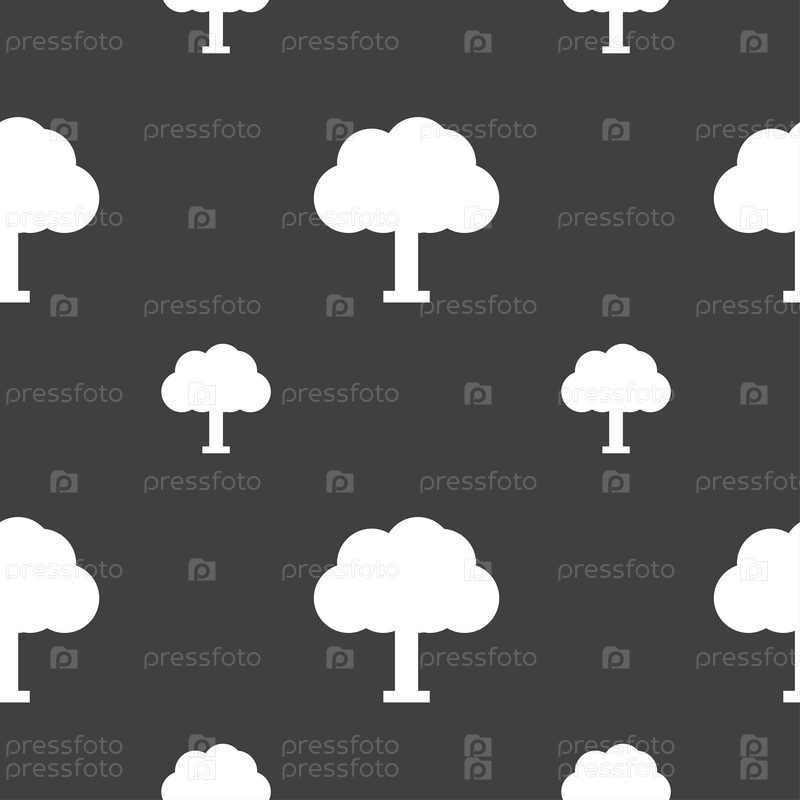Дерево, лес значок знак. Бесшовный узор на сером фоне. Вектор