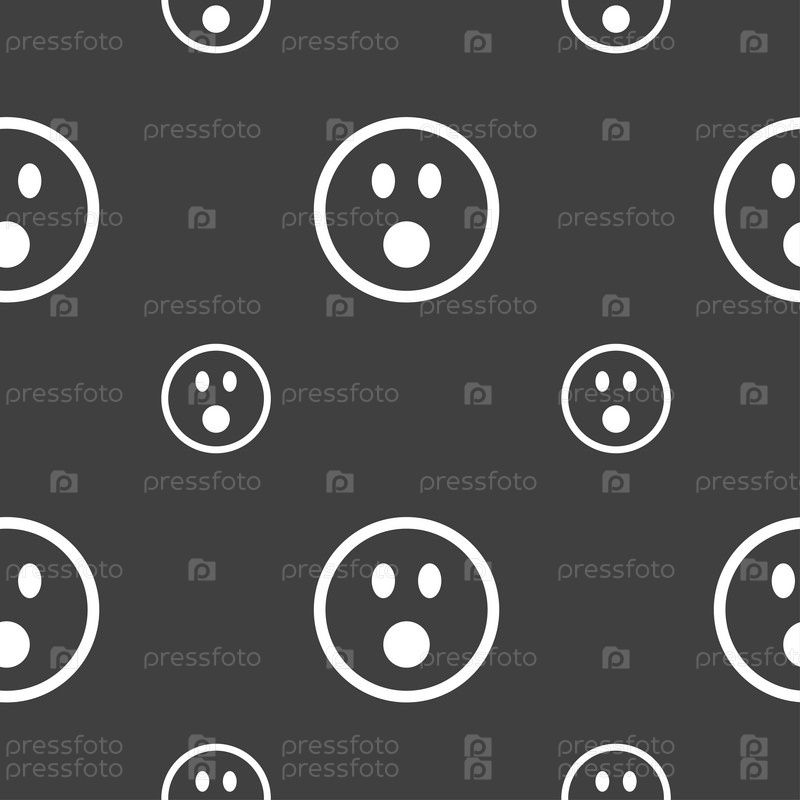 Шокирован лицо смайлик значок знак. Бесшовный узор на сером фоне. Вектор