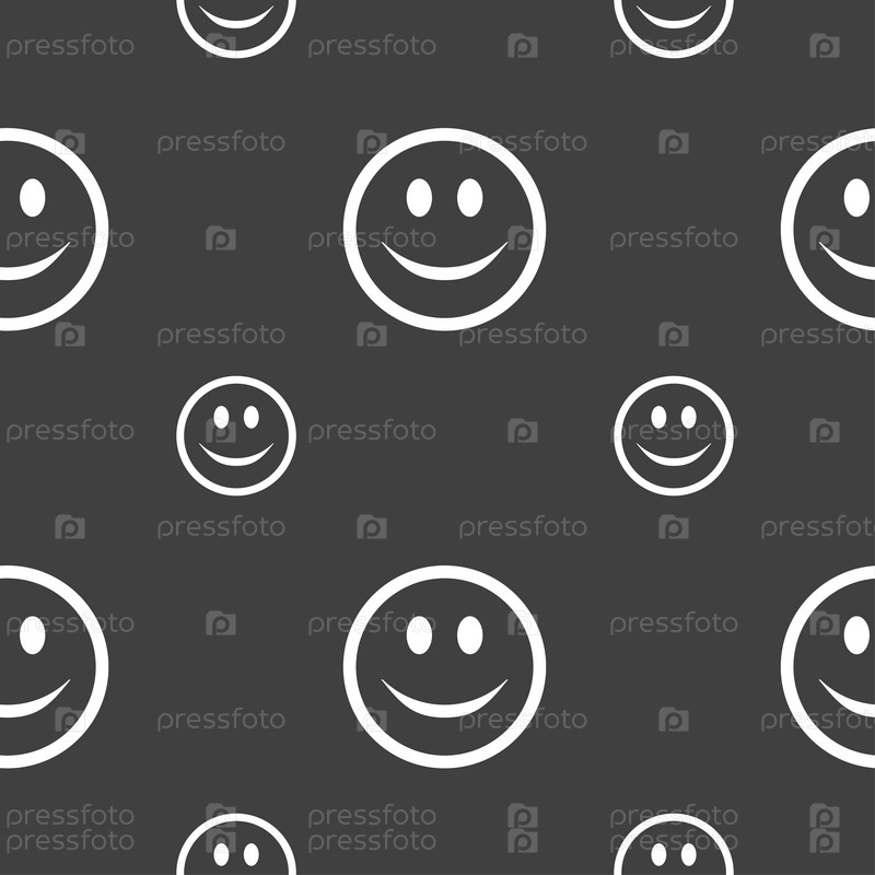 Улыбка, счастливое лицо значок знак. Бесшовный узор на сером фоне. Вектор
