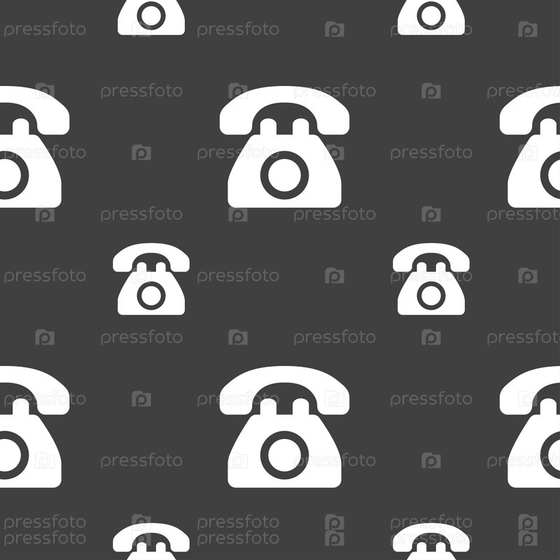 Ретро телефон значок знак. Бесшовный узор на сером фоне. Вектор
