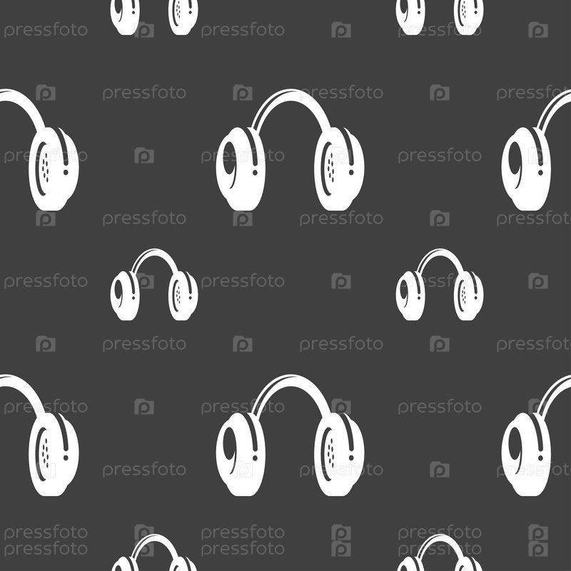 Гарнитуры значок знак. Бесшовный узор на сером фоне. Вектор