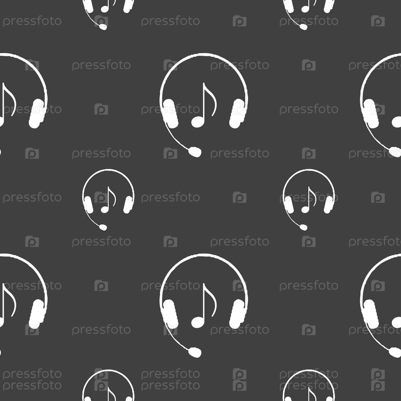Гарнитуры значок знак. Бесшовный узор на сером фоне. Вектор