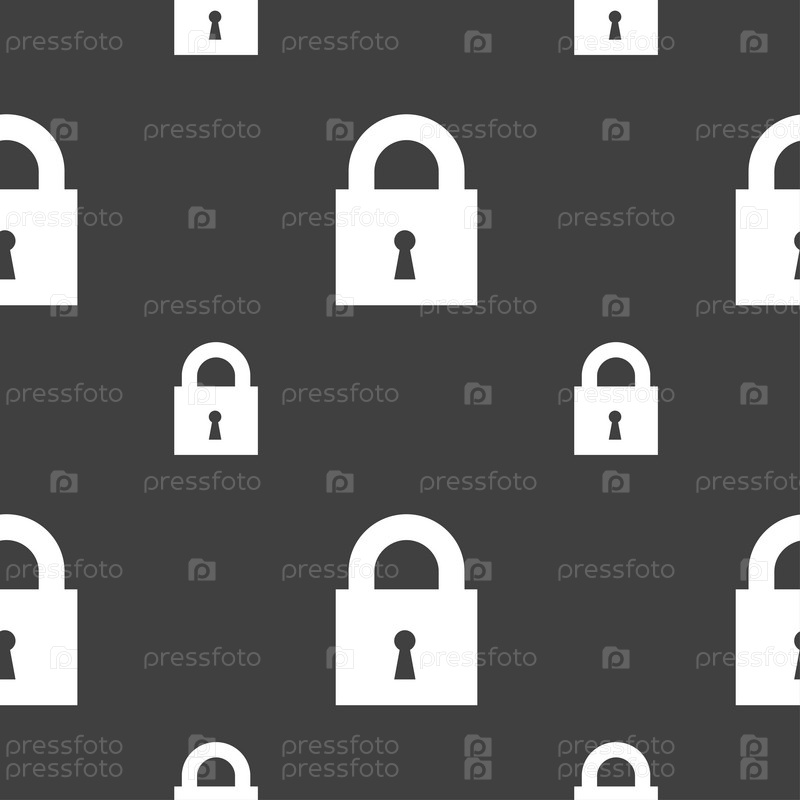 Закрытые знак значок блокировки. Бесшовный узор на сером фоне. Вектор