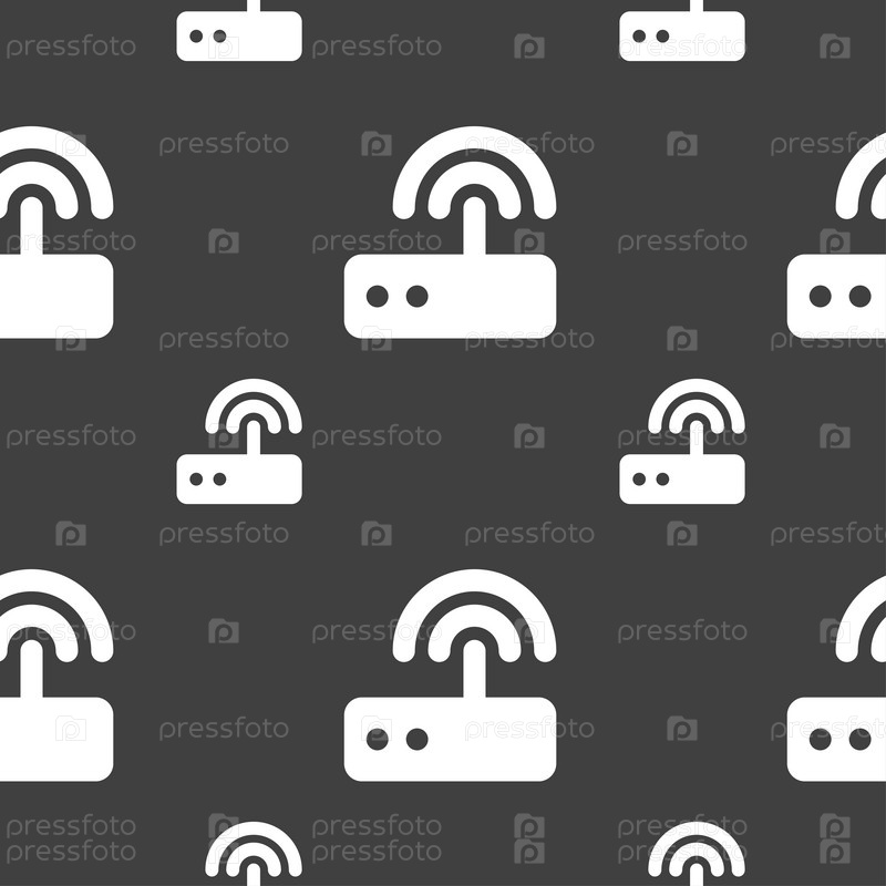 Знак значка Wi-Fi маршрутизатора. Бесшовный узор на сером фоне. Вектор