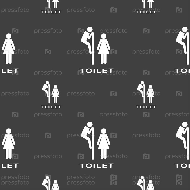 Туалет значок знак. Бесшовный узор на сером фоне. Вектор