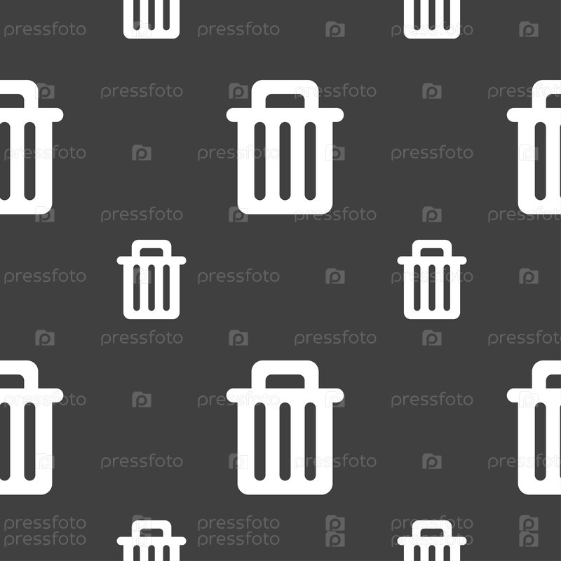 Рецикл бин значок знак. Бесшовный узор на сером фоне. Вектор