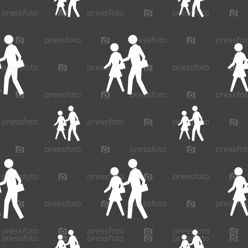 Значок знак пешеходного перехода. Бесшовный узор на сером фоне. Вектор