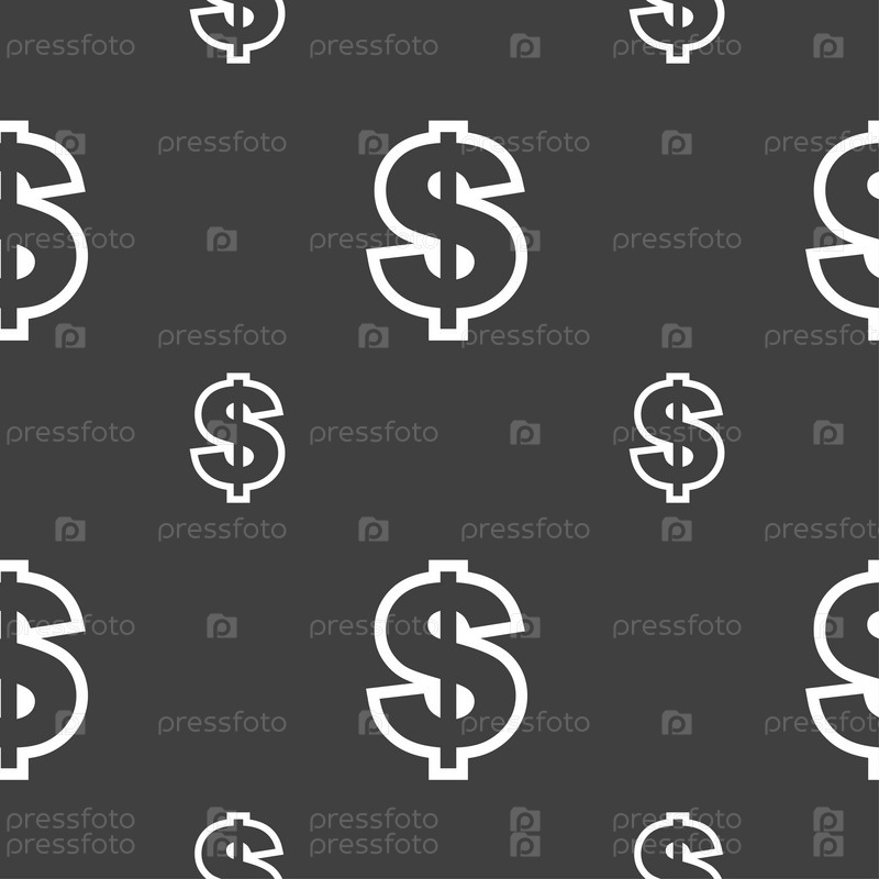 Значок знак доллара. Бесшовный узор на сером фоне. Вектор