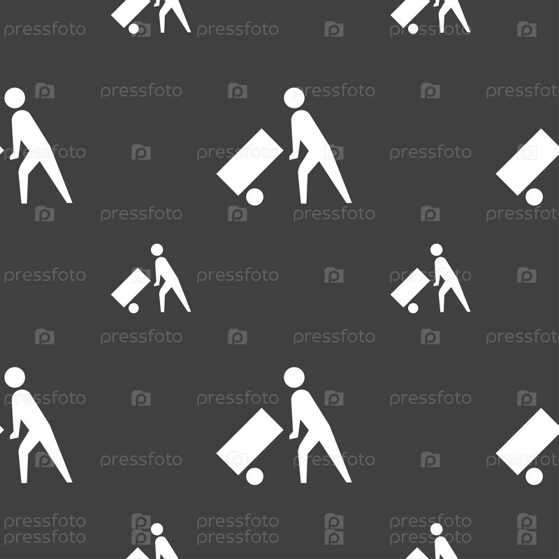 Погрузчик значок знак. Бесшовный узор на сером фоне. Вектор