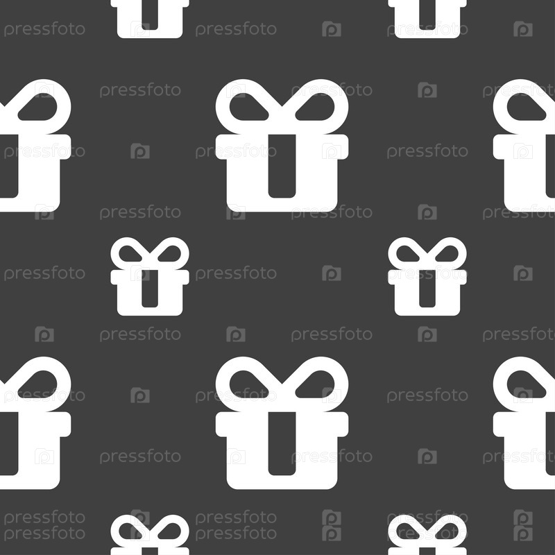 Подарок значок знак. Бесшовный узор на сером фоне. Вектор