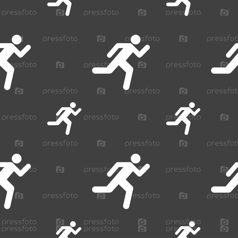 Бегущий человек значок знак. Бесшовный узор на сером фоне. Вектор