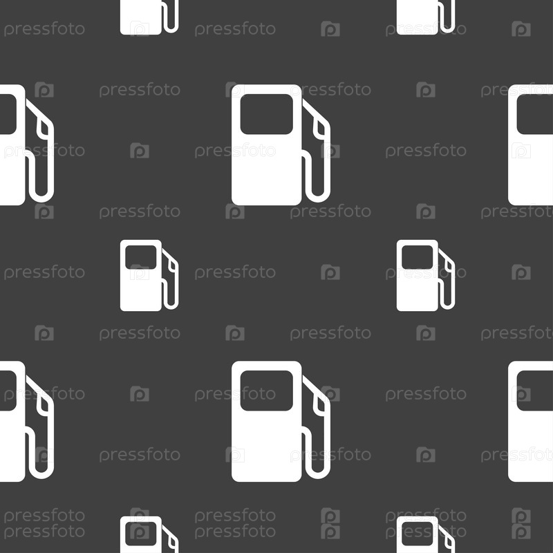 Авто газ станции значок знак. Бесшовный узор на сером фоне. Вектор