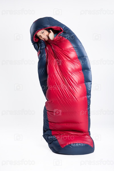 Молодая женщина в спальный мешок