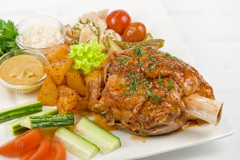 Грудинка с овощами на белом фоне