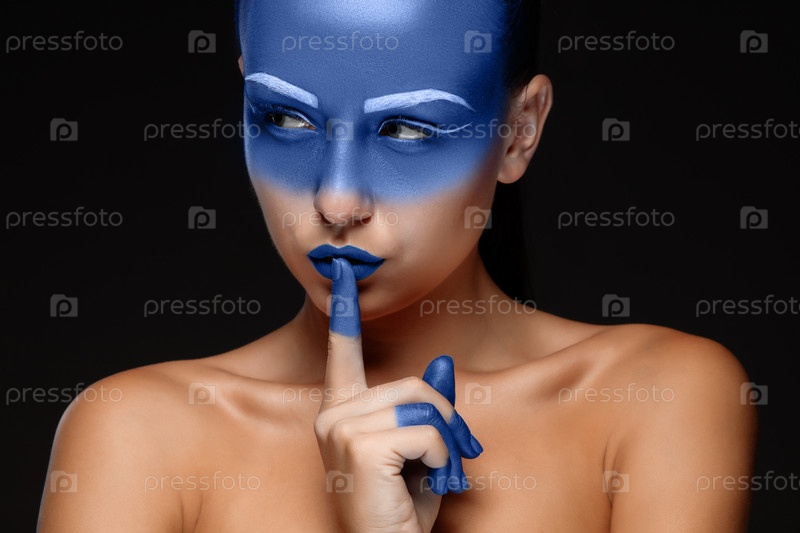 Портрет женщины, которая позирует покрыта синей краской