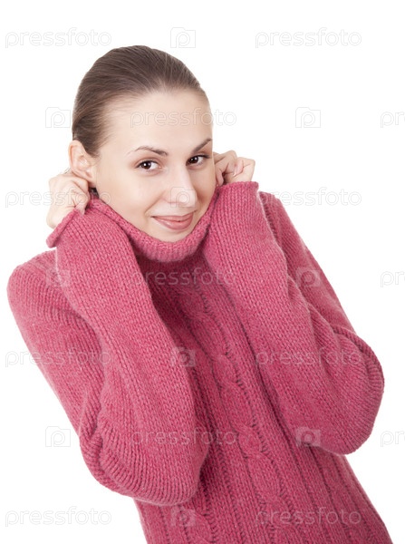Портрет молодой девушки на белом фоне