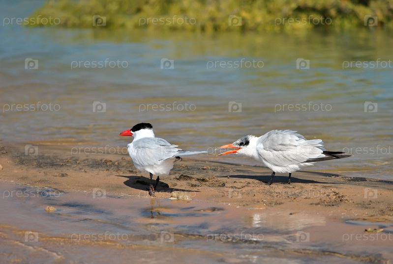 Две чегравы на берегу водоема