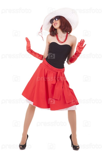 Портрет молодой девушки в шляпе на белом фоне