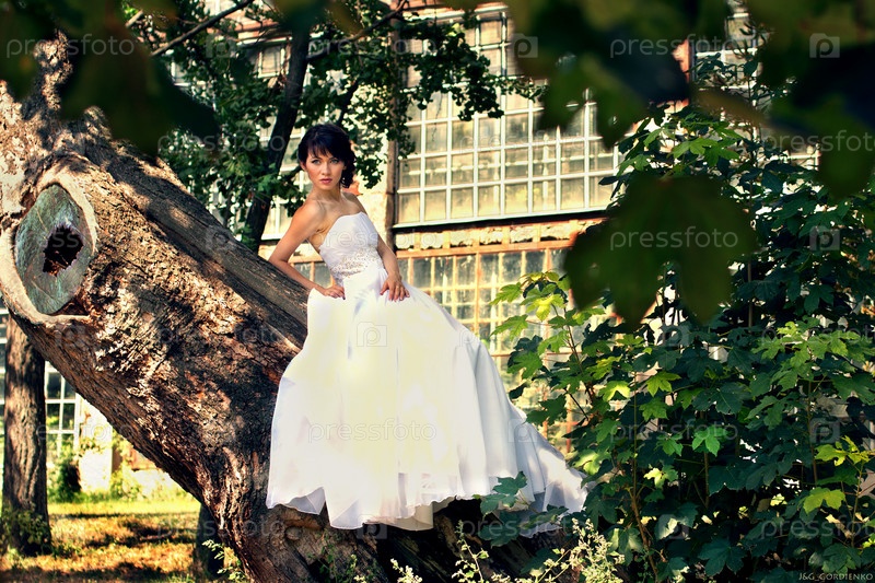 Невеста позирует на дереве
