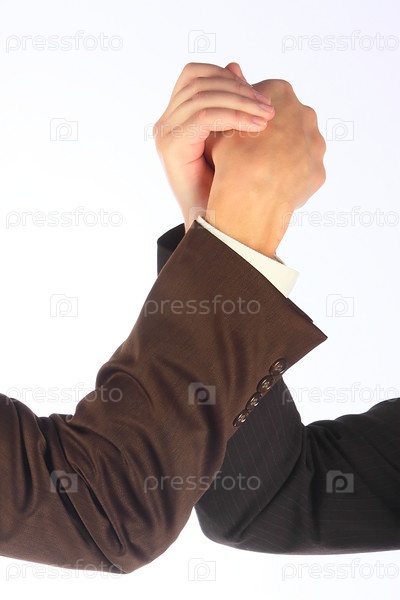 Две борющиеся руки деловых людей. Армреслинг