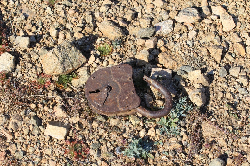 Старый навесной замок лежит на камнях