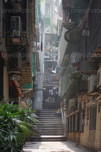 Освещенная солнцем улица в Макао