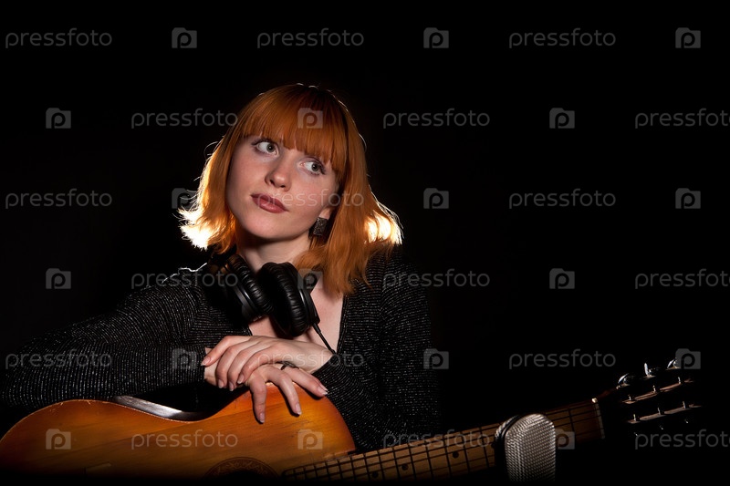 Девушка с гитарой на черном фоне