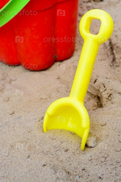 Ведро и лопатой в песке