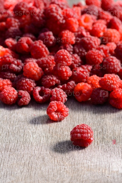 Спелой малины, разбросанные на столе