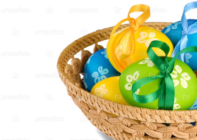 Пасхальные яйца в плетеной корзине