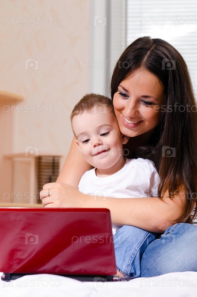 Мама и маленький сын с ноутбуком