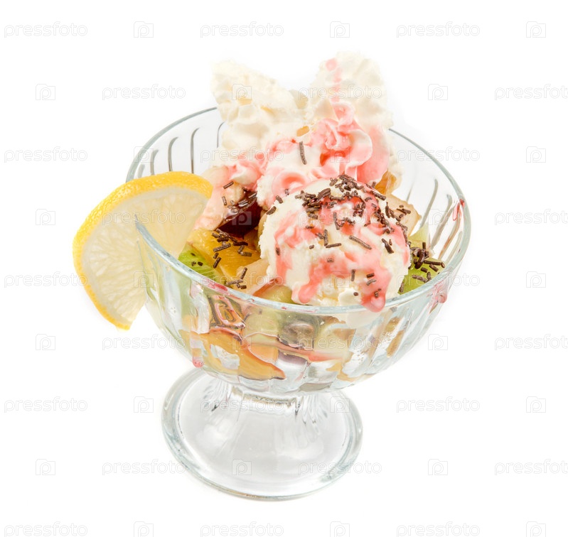 Вкусное мороженое с фруктами