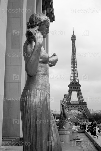 Статуи и Эйфелева башня в Париже Франция