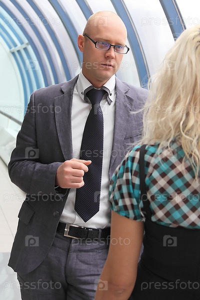 Бизнесмен разговаривает с молодой блондинкой