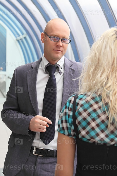 Бизнесмен разговаривает с молодой блондинкой