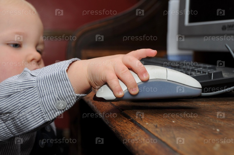 Ребенок с помощью компьютерной мыши
