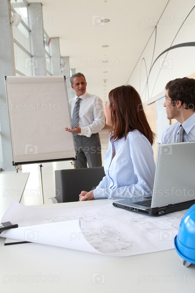 Архитекторы, работающие над проектом строительства в офисе