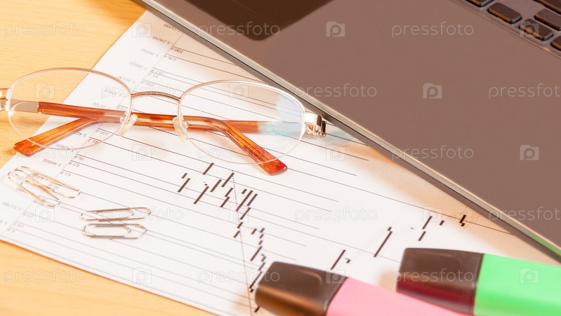 Ноутбук, маркеры и очки на офисном столе