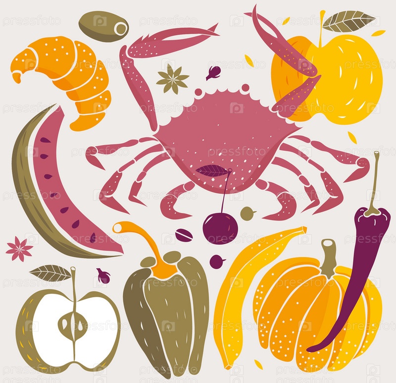 Краб, фрукты и овощи