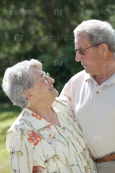 Пожилые супружеские пары, в саду