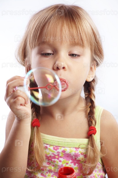 Девочка пускает мыльные пузыри