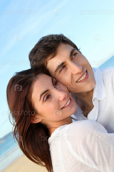 Прекрасная пара на пляже летом