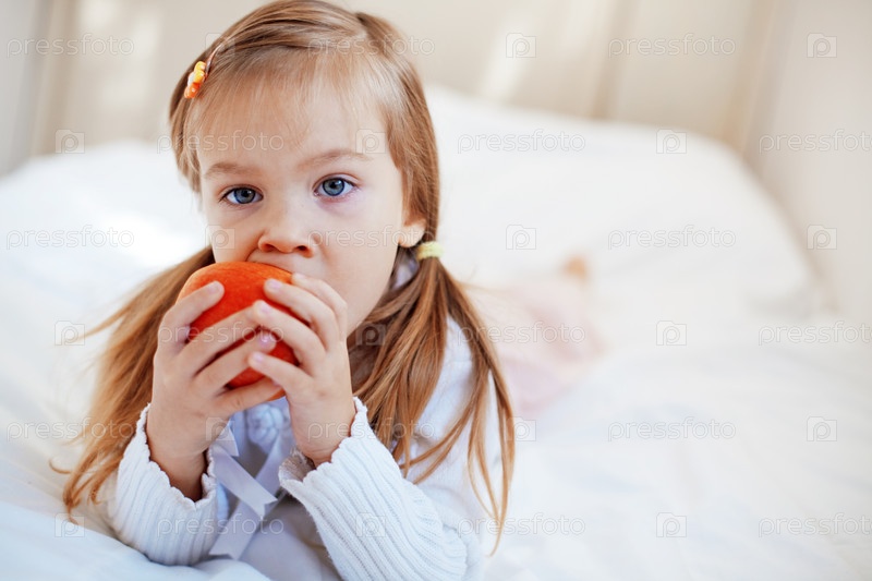 Девочка ест яблоко