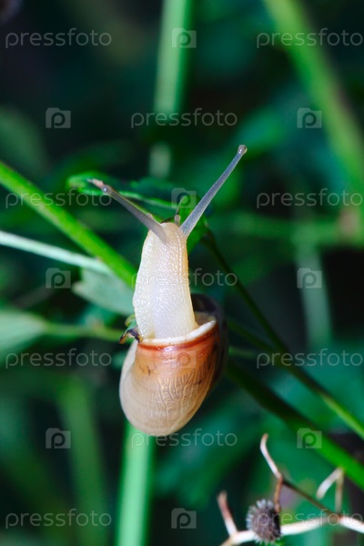Улитка на зеленом стебле