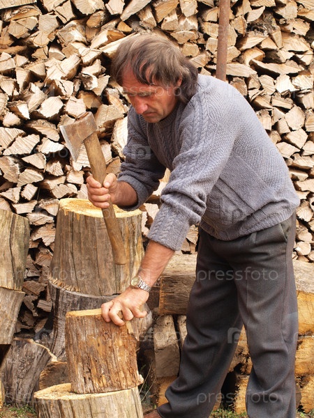 Мужчина колет дрова