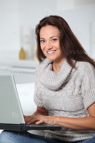 Женщина на диване с ноутбуком