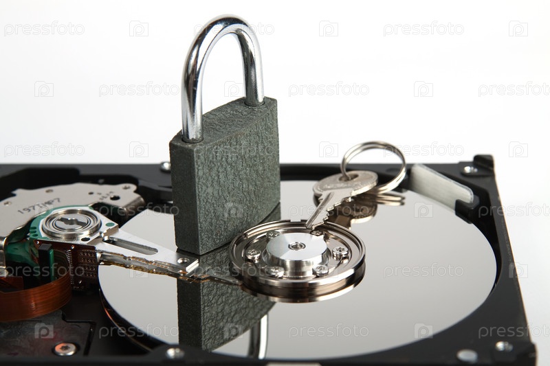 Замок и ключ на жестком диске. концепция безопасности