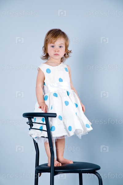 Портрет маленькой симпатичной девочки на стуле