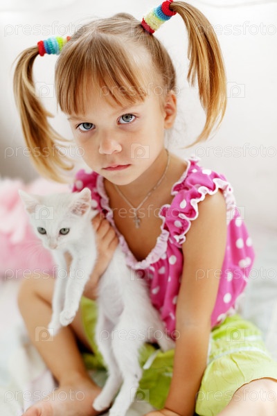 Портрет маленькой симпатичной девочки с котенком