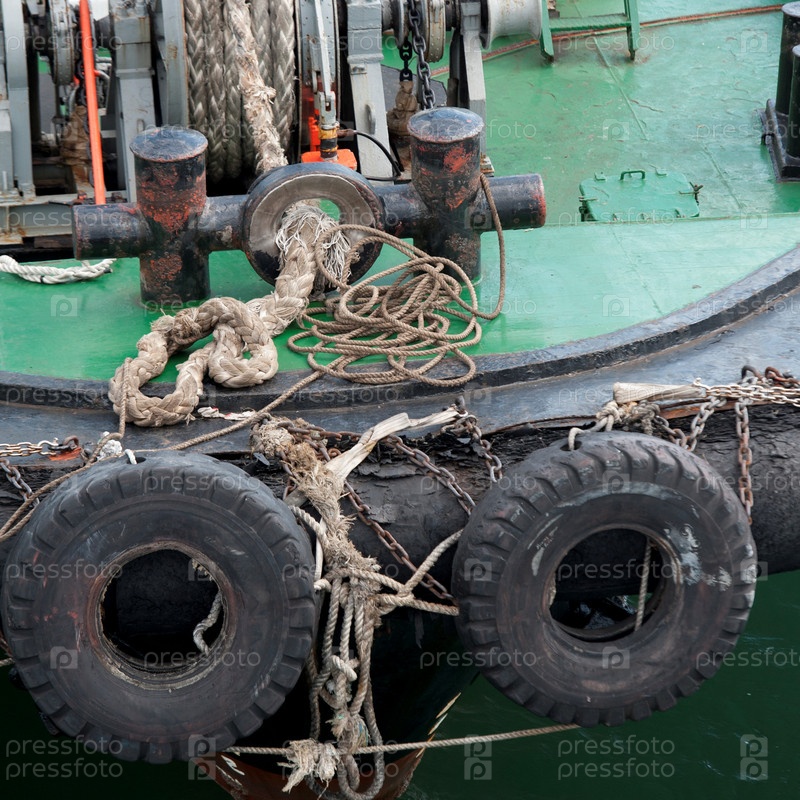 Шины и веревки на лодке, Пусан, Йоннам, Южная Корея